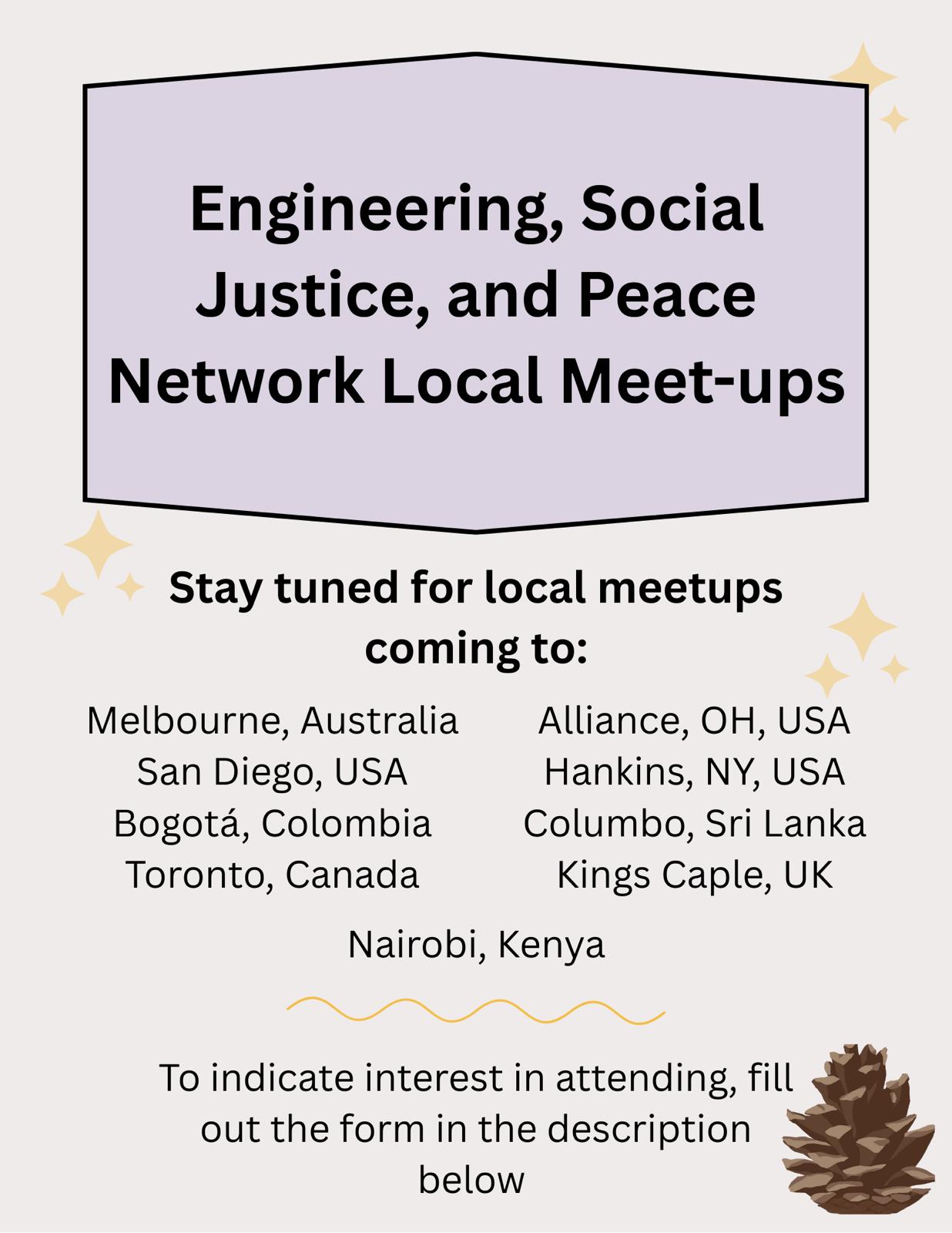 We are delighted to be hosting a number of local meetings in 2026 to enable groups around the world to connect and support one another in our journey towards justice and peace. The meetings vary in size and style – they may be just a few friends gathering in a cafe, a nature -based retreat for 10-15 people or a workshop for 40+ and they will all focus on local issues relating to the overall themes of ESJP.